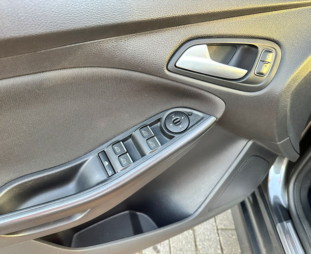 Binnenin wordt u verwelkomd door sportstoelen met opvallende rode stiksels en een zwarte hemelbekleding. Deze Focus zit boordevol moderne technologie:
