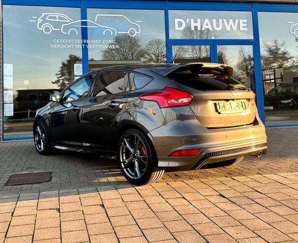 Het ST-Line pakket geeft de auto een onmiskenbaar sportieve look. Denk aan de honingraat grille, een grote achterspoiler, zwarte koplampbehuizing en de prachtige 18 inch 8-spaaks lichtmetalen velgen. De Bi-Xenon verlichting en LED-achterlichten zorgen niet alleen voor optimaal zicht, maar geven de wagen ook een moderne, premium uitstraling.